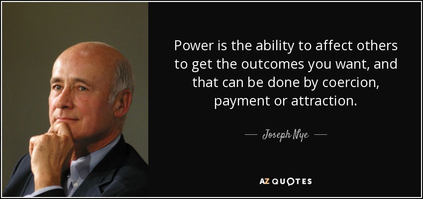 Power is the ability to affect others to get the outcomes you want, and that can be done by coercion, payment or attraction.