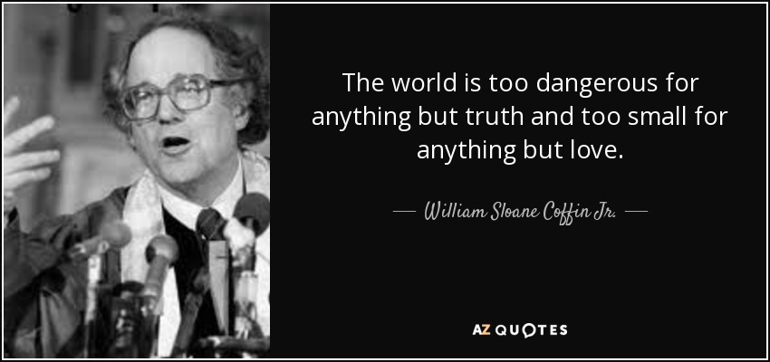 The world is too dangerous for anything but truth and too small for anything but love. We can never really love anybody with whom we never laugh. Love is in the giver, not the gift.