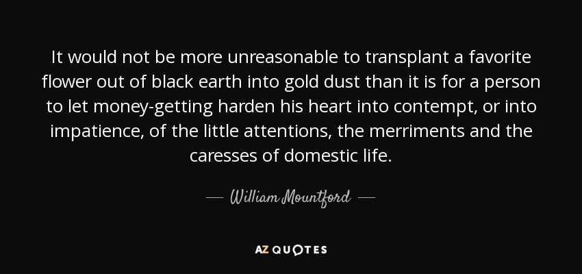 It would not be more unreasonable to transplant a favorite flower out of black earth into gold dust than it is for a person to let money-getting harden his heart into contempt, or into impatience, of the little attentions, the merriments and the caresses of domestic life.