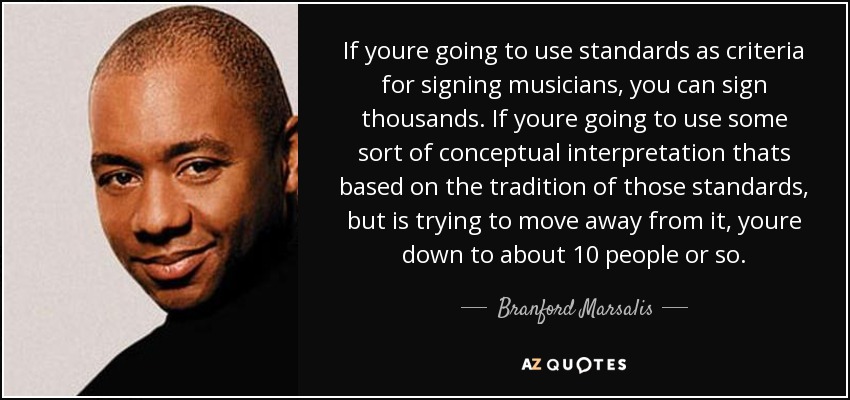 If youre going to use standards as criteria for signing musicians, you can sign thousands. If youre going to use some sort of conceptual interpretation thats based on the tradition of those standards, but is trying to move away from it, youre down to about 10 people or so.