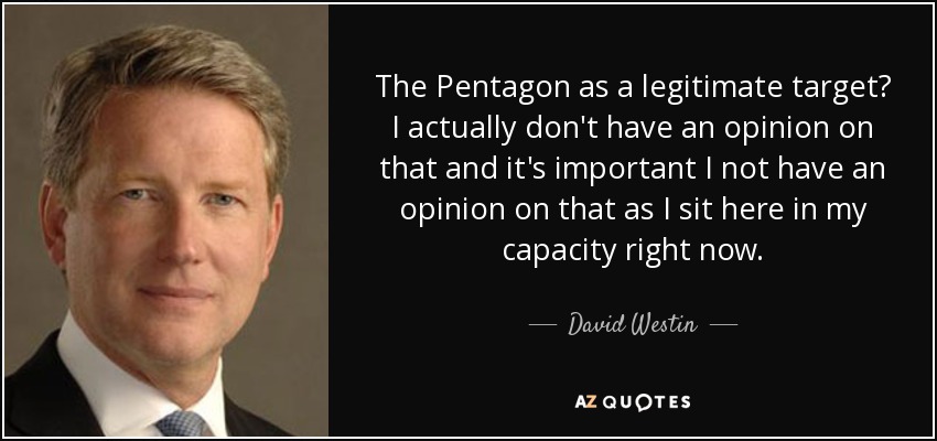 The Pentagon as a legitimate target? I actually don't have an opinion on that and it's important I not have an opinion on that as I sit here in my capacity right now.