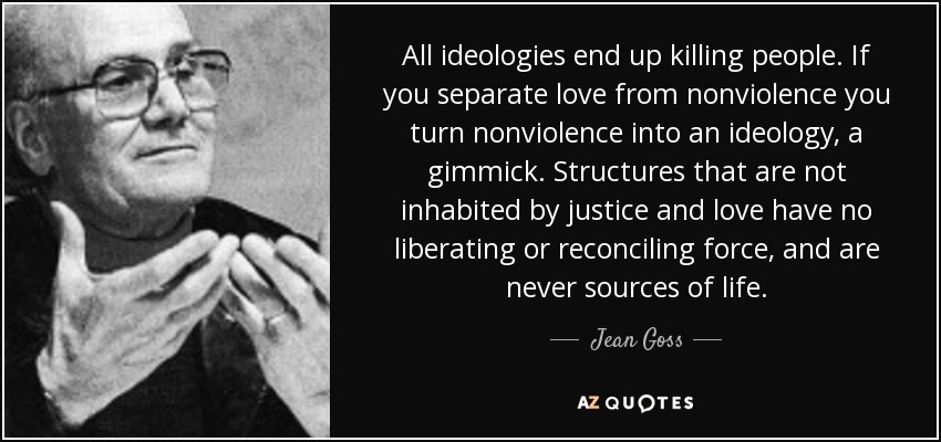 All ideologies end up killing people. If you separate love from nonviolence you turn nonviolence into an ideology, a gimmick. Structures that are not inhabited by justice and love have no liberating or reconciling force, and are never sources of life.