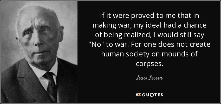 If it were proved to me that in making war, my ideal had a chance of being realized, I would still say "No" to war. For one does not create human society on mounds of corpses.