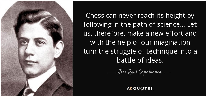 Chess can never reach its height by following in the path of science ... Let us, therefore, make a new effort and with the help of our imagination turn the struggle of technique into a battle of ideas.