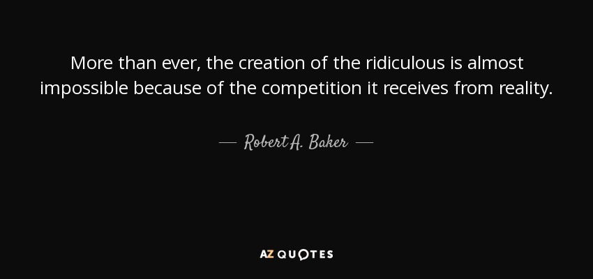 More than ever, the creation of the ridiculous is almost impossible because of the competition it receives from reality.
