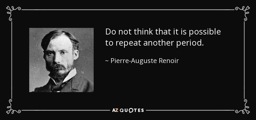 It is impossible to repeat in one period what was done in another.The pointof view isnotthesame, anymorethan are the tools, the ideals, the needs, or the painters' techniques.