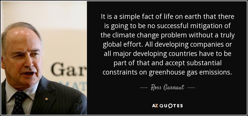 It is a simple fact of life on earth that there is going to be no successful mitigation of the climate change problem without a truly global effort. All developing companies or all major developing countries have to be part of that and accept substantial constraints on greenhouse gas emissions.