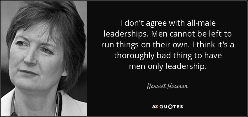 I don't agree with all-male leaderships. Men cannot be left to run things on their own. I think it's a thoroughly bad thing to have men-only leadership.