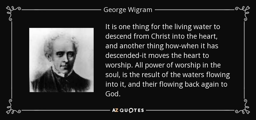It is one thing for the living water to descend from Christ into the heart, and another thing how-when it has descended-it moves the heart to worship. All power of worship in the soul, is the result of the waters flowing into it, and their flowing back again to God.