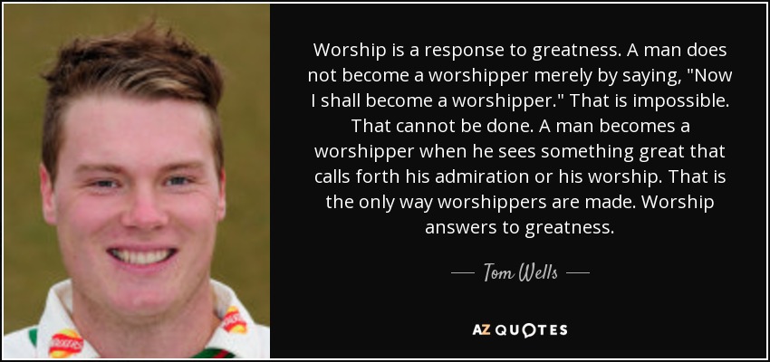 Worship is a response to greatness. A man does not become a worshipper merely by saying, "Now I shall become a worshipper." That is impossible. That cannot be done. A man becomes a worshipper when he sees something great that calls forth his admiration or his worship. That is the only way worshippers are made. Worship answers to greatness.