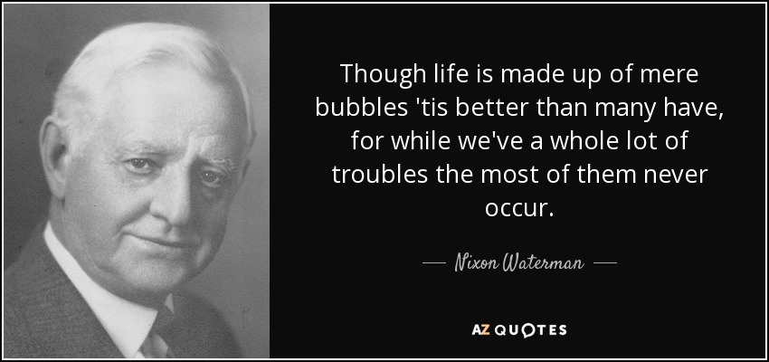 Though life is made up of mere bubbles 'tis better than many have, for while we've a whole lot of troubles the most of them never occur.