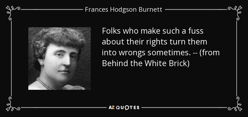 Folks who make such a fuss about their rights turn them into wrongs sometimes. -- (from Behind the White Brick)