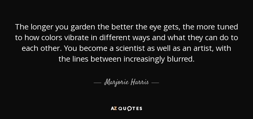 The longer you garden the better the eye gets, the more tuned to how colors vibrate in different ways and what they can do to each other. You become a scientist as well as an artist, with the lines between increasingly blurred.