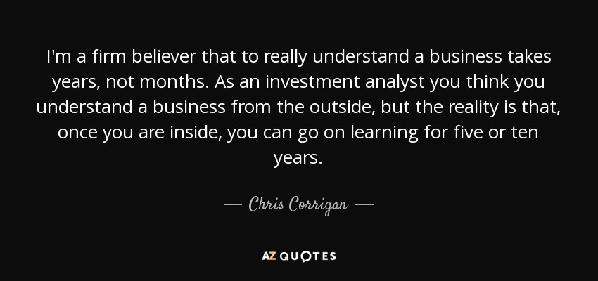 I'm a firm believer that to really understand a business takes years, not months. As an investment analyst you think you understand a business from the outside, but the reality is that, once you are inside, you can go on learning for five or ten years.