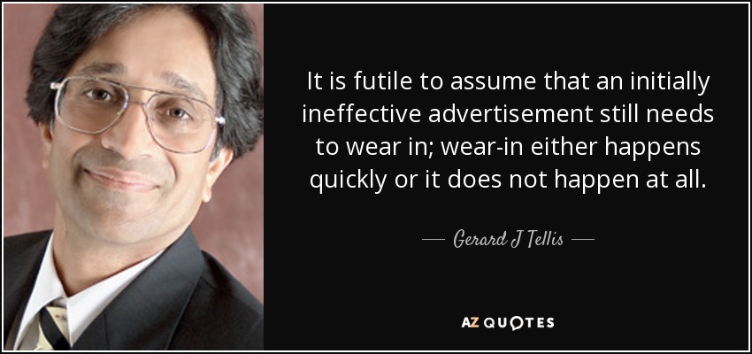 It is futile to assume that an initially ineffective advertisement still needs to wear in; wear-in either happens quickly or it does not happen at all.