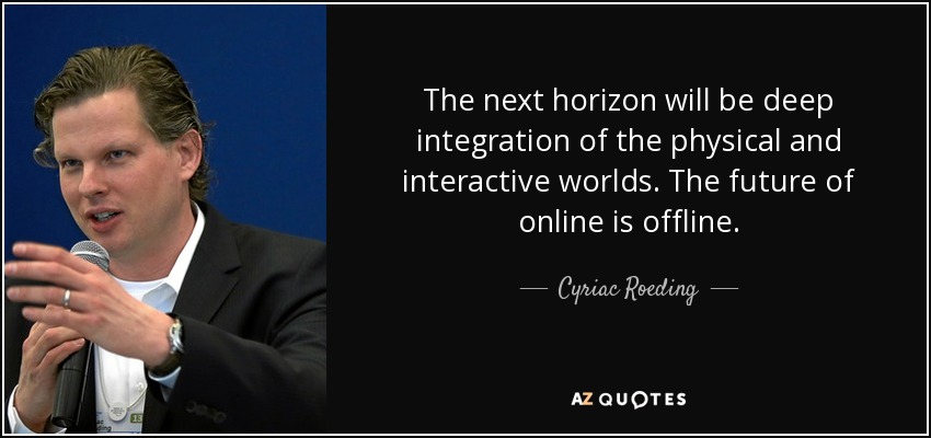 The next horizon will be deep integration of the physical and interactive worlds. The future of online is offline.