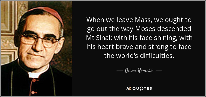 When we leave Mass, we ought to go out the way Moses descended Mt Sinai: with his face shining, with his heart brave and strong to face the world's difficulties.