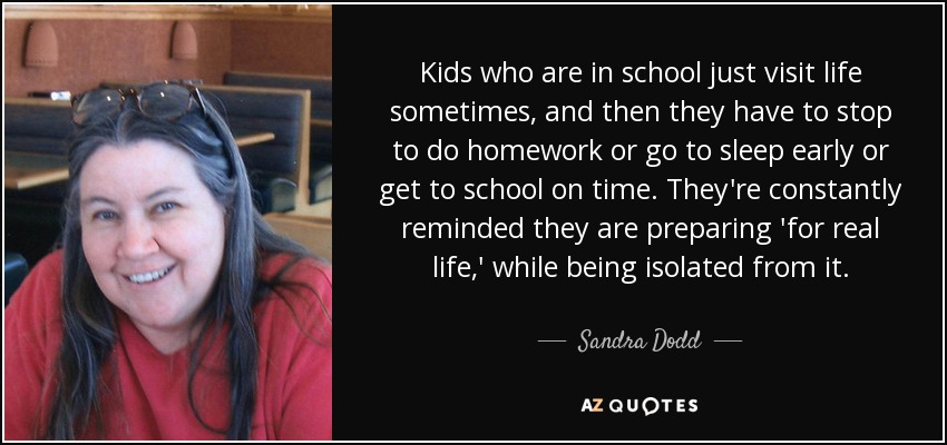 Kids who are in school just visit life sometimes, and then they have to stop to do homework or go to sleep early or get to school on time. They're constantly reminded they are preparing 'for real life,' while being isolated from it.