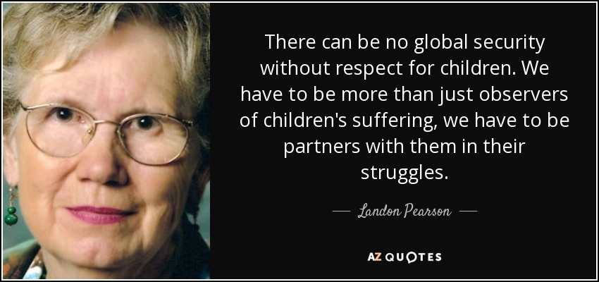 There can be no global security without respect for children. We have to be more than just observers of children's suffering, we have to be partners with them in their struggles.