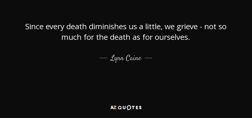 Since every death diminishes us a little, we grieve - not so much for the death as for ourselves.