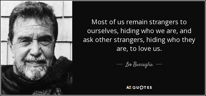 Most of us remain strangers to ourselves, hiding who we are, and ask other strangers, hiding who they are, to love us.