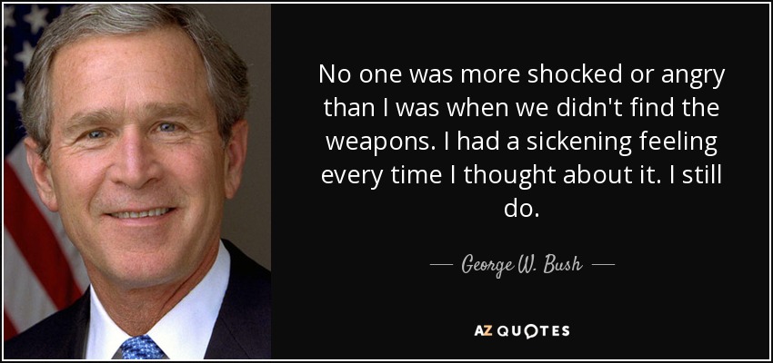 "I said, going into Iraq, "We've got to take threats seriously before they full materialize." I saw a threat. I fully believe it was the right decision to remove Saddam Hussein, and I fully believe the world is better off without him."