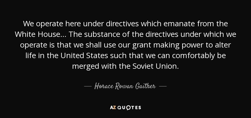 We operate here under directives which emanate from the White House... The substance of the directives under which we operate is that we shall use our grant making power to alter life in the United States such that we can comfortably be merged with the Soviet Union.