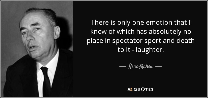 There is only one emotion that I know of which has absolutely no place in spectator sport and death to it - laughter.