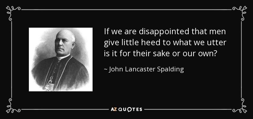 If we are disappointed that men give little heed to what we utter is it for their sake or our own?