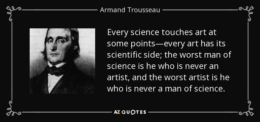 Every science touches art at some points—every art has its scientific side; the worst man of science is he who is never an artist, and the worst artist is he who is never a man of science.