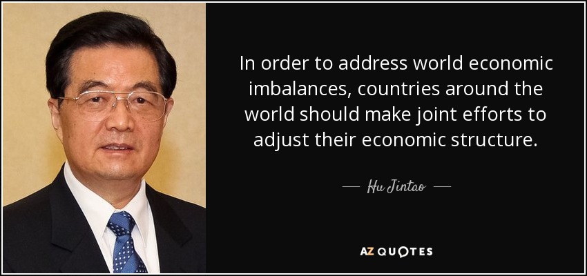 In order to address world economic imbalances, countries around the world should make joint efforts to adjust their economic structure.