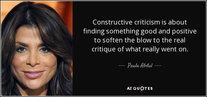 Constructive criticism is about finding something good and positive to soften the blow to the real critique of what really went on.