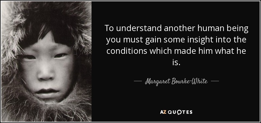 To understand another human being you must gain some insight into the conditions which made him what he is.