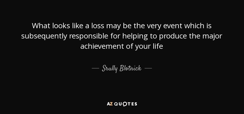 What looks like a loss may be the very event which is subsequently responsible for helping to produce the major achievement of your life