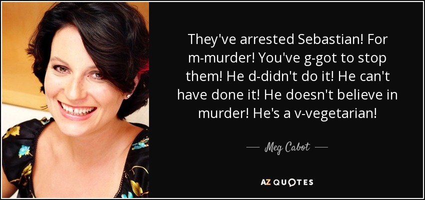 They've arrested Sebastian! For m-murder! You've g-got to stop them! He d-didn't do it! He can't have done it! He doesn't believe in murder! He's a v-vegetarian!