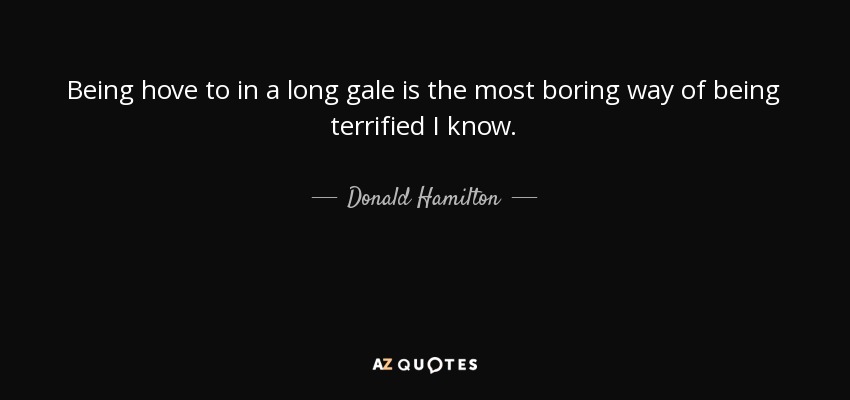 Being hove to in a long gale is the most boring way of being terrified I know.