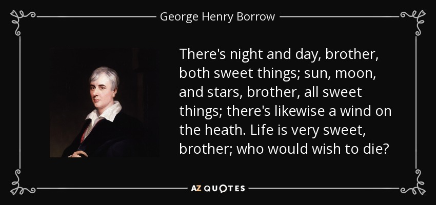 There's night and day, brother, both sweet things; sun, moon, and stars, brother, all sweet things; there's likewise a wind on the heath. Life is very sweet, brother; who would wish to die?