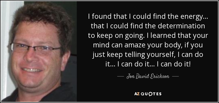 I found that I could find the energy ... that I could find the determination to keep on going. I learned that your mind can amaze your body, if you just keep telling yourself, I can do it ... I can do it ... I can do it!