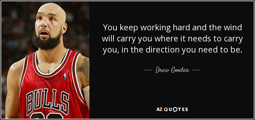 You keep working hard and the wind will carry you where it needs to carry you, in the direction you need to be.