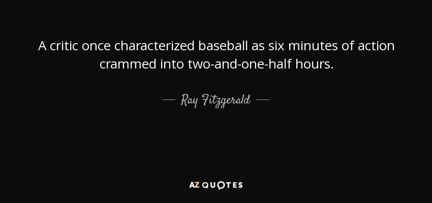 A critic once characterized baseball as six minutes of action crammed into two-and-one-half hours.