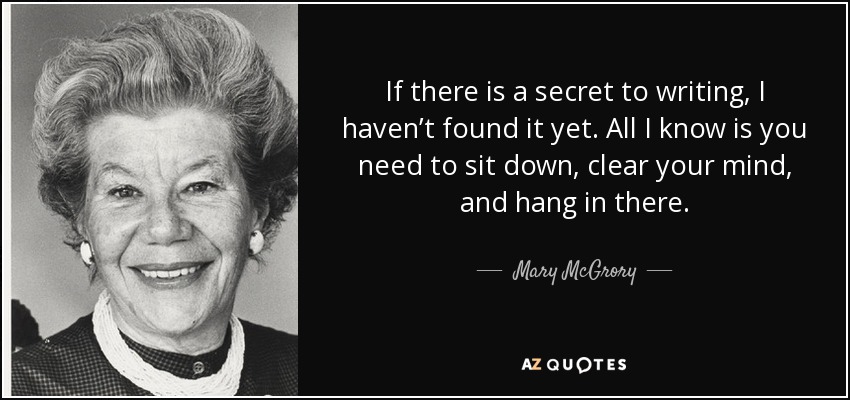If there is a secret to writing, I haven’t found it yet. All I know is you need to sit down, clear your mind, and hang in there.