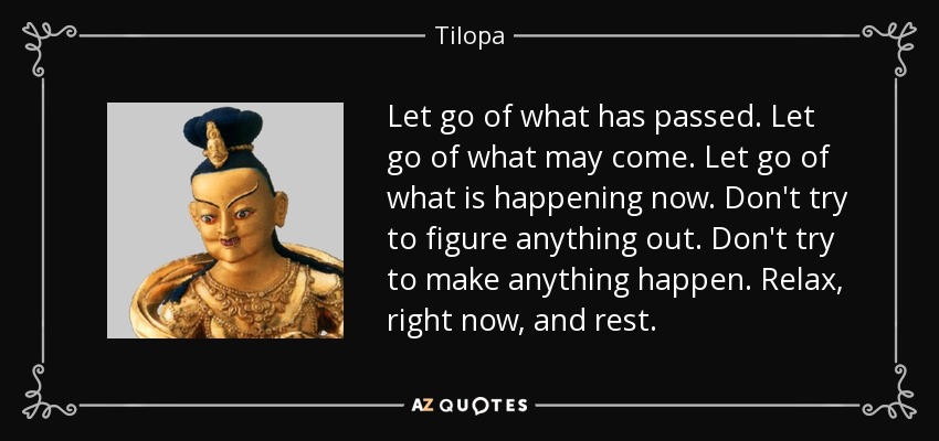 Let go of what has passed. Let go of what may come. Let go of what is happening now. Don't try to figure anything out. Don't try to make anything happen. Relax, right now, and rest.