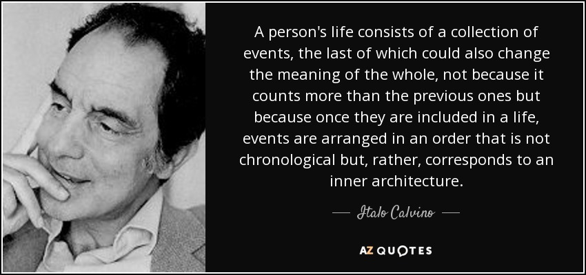 A person's life consists of a collection of events, the last of which could also change the meaning of the whole, not because it counts more than the previous ones but because once they are included in a life, events are arranged in an order that is not chronological but, rather, corresponds to an inner architecture.