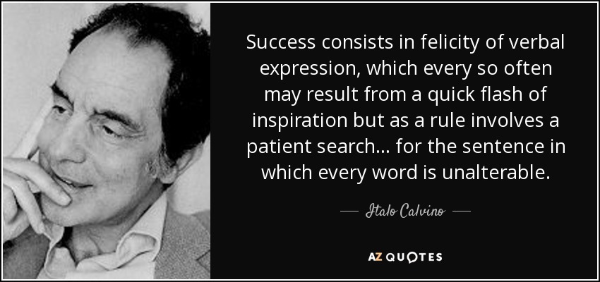 Success consists in felicity of verbal expression, which every so often may result from a quick flash of inspiration but as a rule involves a patient search... for the sentence in which every word is unalterable.