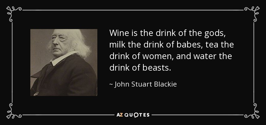 Wine is the drink of the gods, milk the drink of babes, tea the drink of women, and water the drink of beasts.