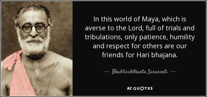 In this world of Maya, which is averse to the Lord, full of trials and tribulations, only patience, humility and respect for others are our friends for Hari bhajana.