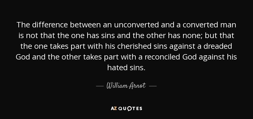 The difference between an unconverted and a converted man is not that the one has sins and the other has none; but that the one takes part with his cherished sins against a dreaded God and the other takes part with a reconciled God against his hated sins.