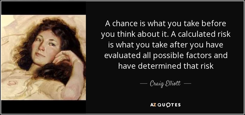 A chance is what you take before you think about it. A calculated risk is what you take after you have evaluated all possible factors and have determined that risk