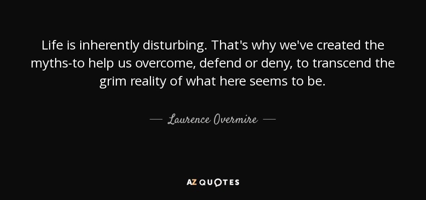 Life is inherently disturbing. That's why we've created the myths-to help us overcome, defend or deny, to transcend the grim reality of what here seems to be.