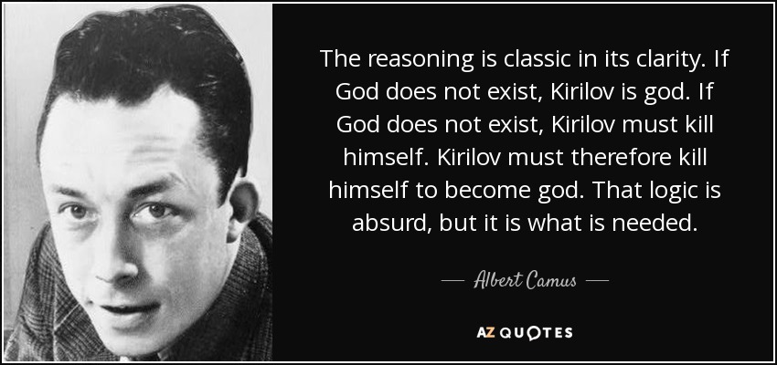 The reasoning is classic in its clarity. If God does not exist, Kirilov is god. If God does not exist, Kirilov must kill himself. Kirilov must therefore kill himself to become god. That logic is absurd, but it is what is needed.